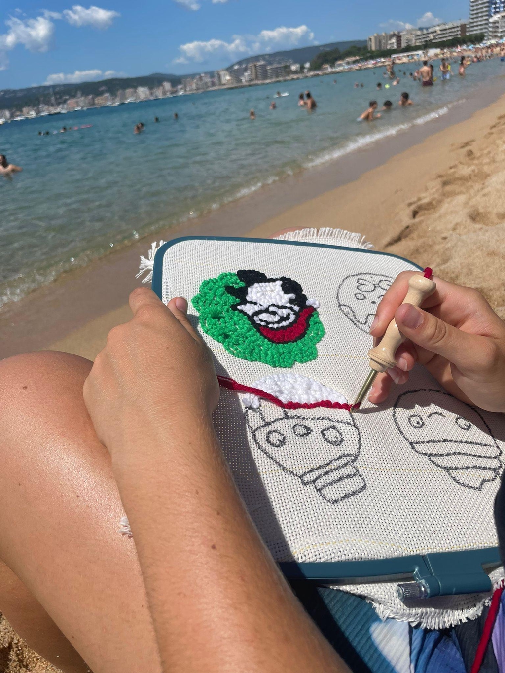 Het lijkt een beetje op tuften, maar dan in het klein – daarom wordt punch needle ook wel het kleine zusje van tuften genoemd. Je werkt met handgereedschap in plaats van een grote tuftmachine, waardoor het super toegankelijk is voor beginners.
